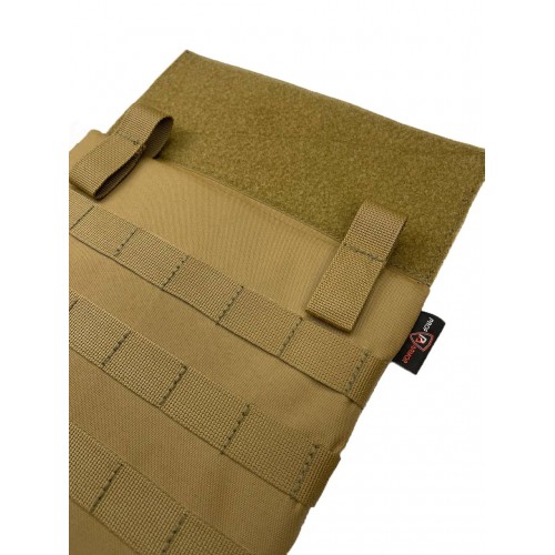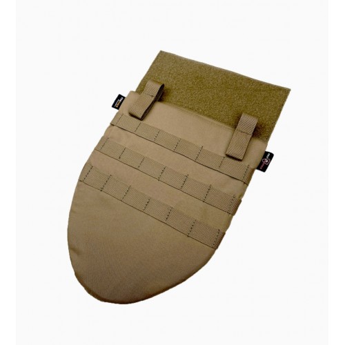 Виготовлений оригінальної міцної тканини нейлон американського виробництва  торгової марки Cordura 500d Coyote, кріпиться на передню частину жилета за допомогою велкро нашитого на верхній частині чохла пахового захисту, або по бажанню на стропи МОЛЛЕ на кнопках. На передній частині чохла нашиті стропи , для підвішування додаткових підсумків. Якщо паховий захист не потрібен його можна загнути та зачепити на грудь жилета нижньою стороною до верху на хлястик стропи , який передбачено з внутрішньої сторони паху .