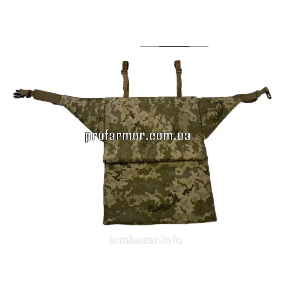 Кріпиться на варбельт на молле , будь яким зручним способом , або зверху, або знизу пояса. Призначений для захисту п'ятої точки від уламків , а також для захисту від переохолодження при сидінні на холодній землі або на бронетехниці.