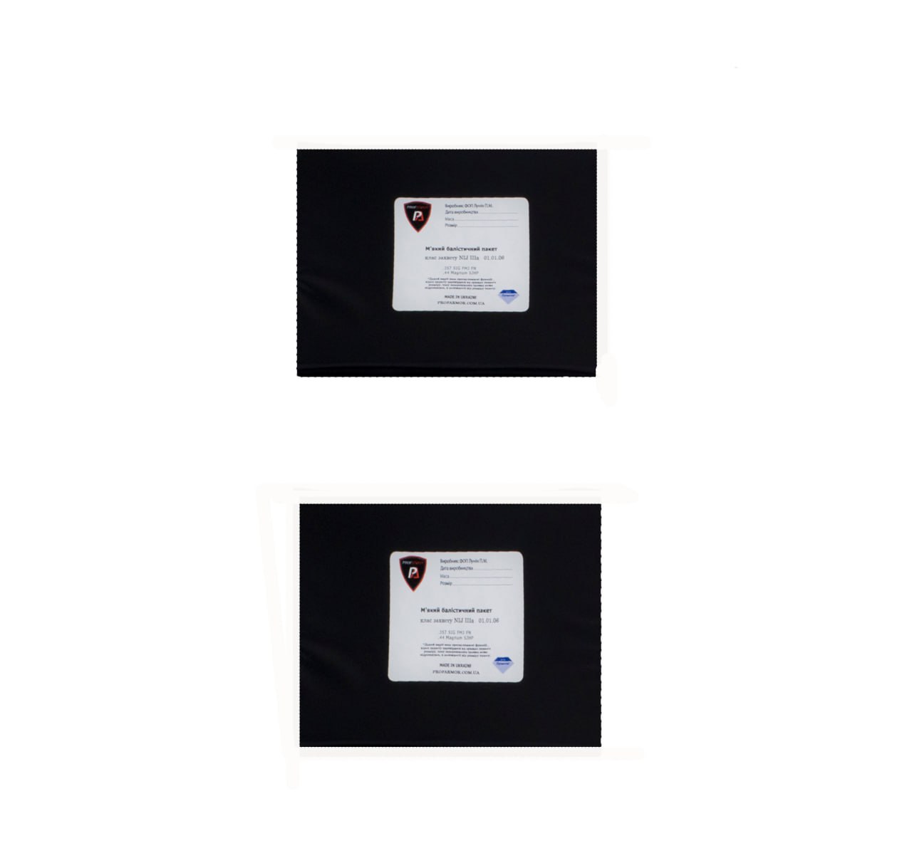 Під NIJ IIIA класом захисту розуміється еквівалент за складом, що випробовується на стандартних зразках 500*500 мм. Тому на зразках меншого розміру розмір заперешкодної травми може відрізнятися.