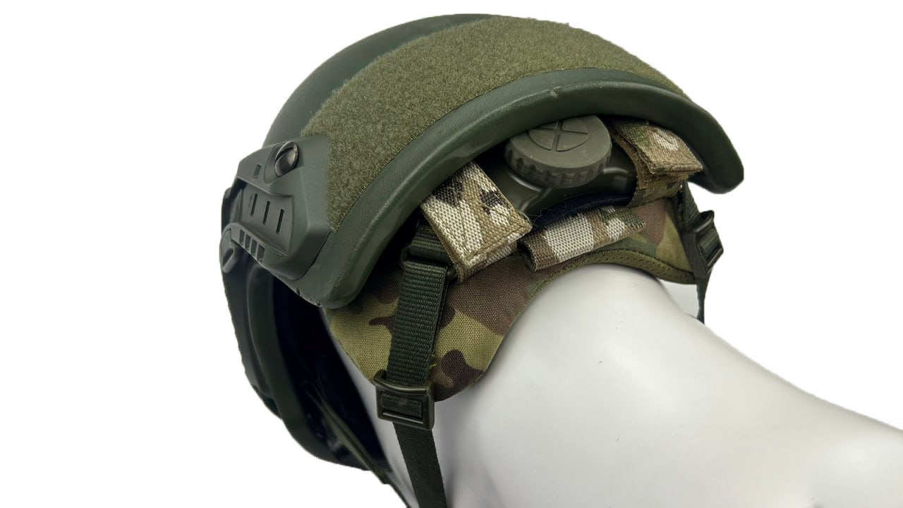 Такий виріб є не тільки додатковим балістичним захистом від уламків, але й у першу чергу робить носіння каски більш комфортною і дозволяє її краще збалансувати та зафіксувати на голові. Тканина Multicam, тканина як належить, не втрачає забарвлення і не "світиться" в ПНВ. Сітка створює вентильований повітряний прошарок для комфортного носіння на потилиці. Velcro (липучка) надійно прилипає.
