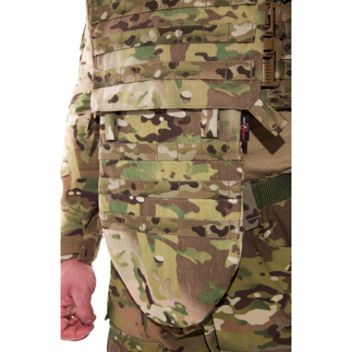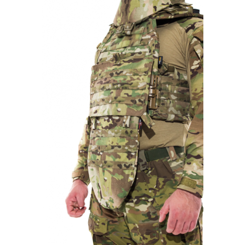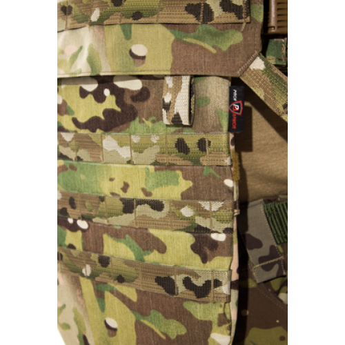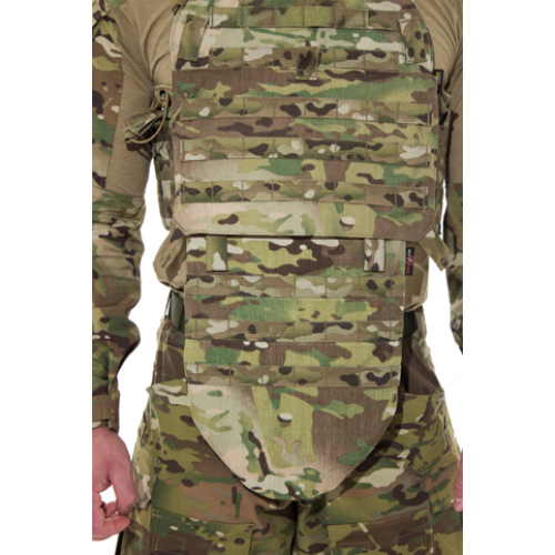 Даний захист кріпиться подвійним кріпленням за допомогою велкро на передню частину ( під "капот" бронежилета або на стропи молле кнопками, на передню частину жилета, коли клапан з велкро не потрібен , а іде кріплення на кнопки, клапан паху загинається і фіксується на задній частині чохла.
